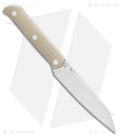 The Artisan Cutlery Silax is a sharp fixed blade knife designed by Dylan Mallery. The wharncliffe blade is satin finished and made out of AR-RPM9 stainless steel. AR-RPM9 steel was created to be affordable yet hold its edge, sharpen beautifully, and prevent corrosion. The handle is tan G-10 with satin rivets. The G-10 is incredibly soft when using the blade. The Silax has full-tang construction that ensures years of use and prevents any blade breakage. Included is a matching tan, Kydex sheath with a neck cord.