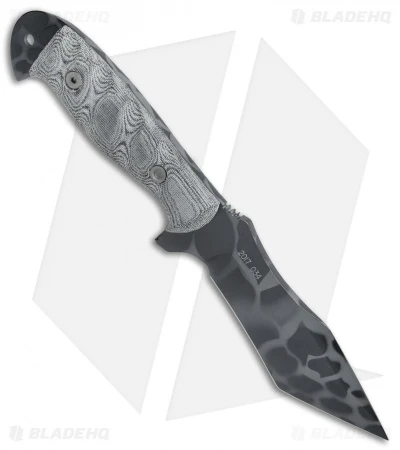 This Wraith model features an Obsidian Cerakote finished blade and gray Micarta handle scales. The Wraith from Dawson Knives is a mid-sized tactical fixed blade with a modified tanto blade made from 80Crv2 alloy steel. Its handle is fitted with grooved Micarta scales for a firm grip in any environment. Item includes a Typhon Kryptec Kydex sheath and Tek-Lok attachment.